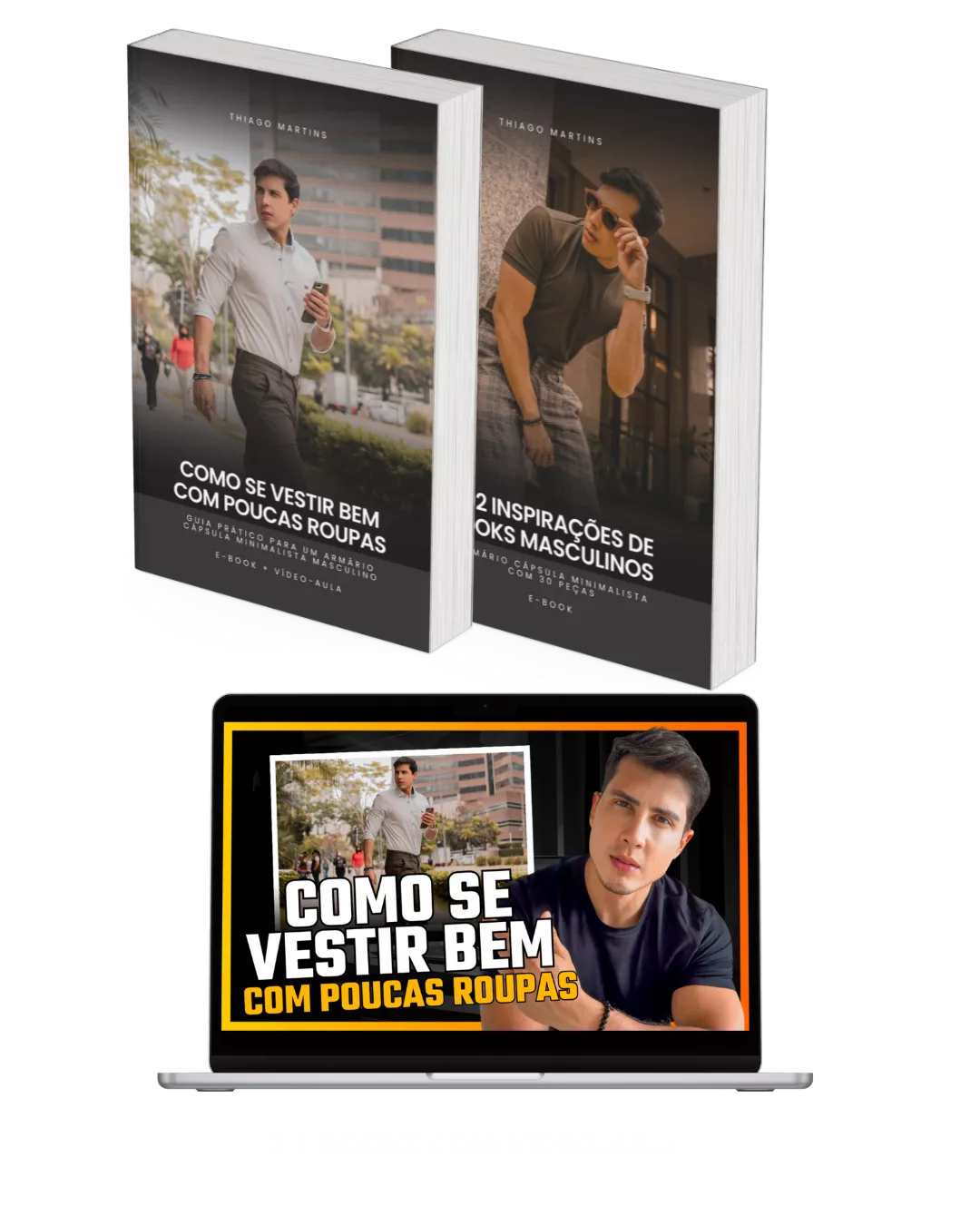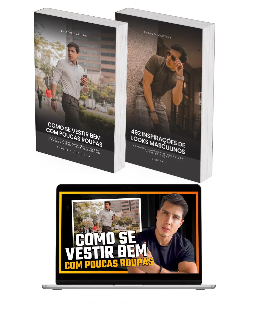 Construa seu próprio armário cápsula masculino e tenha um estilo mais definido sem gastar muito tempo ou dinheiro. Com o E-book Como se vestir bem com poucas roupas, aprenda como criar combinações de looks incríveis e economize tempo e dinheiro ao fazer compras. Inclui vídeo-aula exclusiva para aprender a fazer combinações de looks. Adquira agora e melhore sua aparência e autoconfiança.